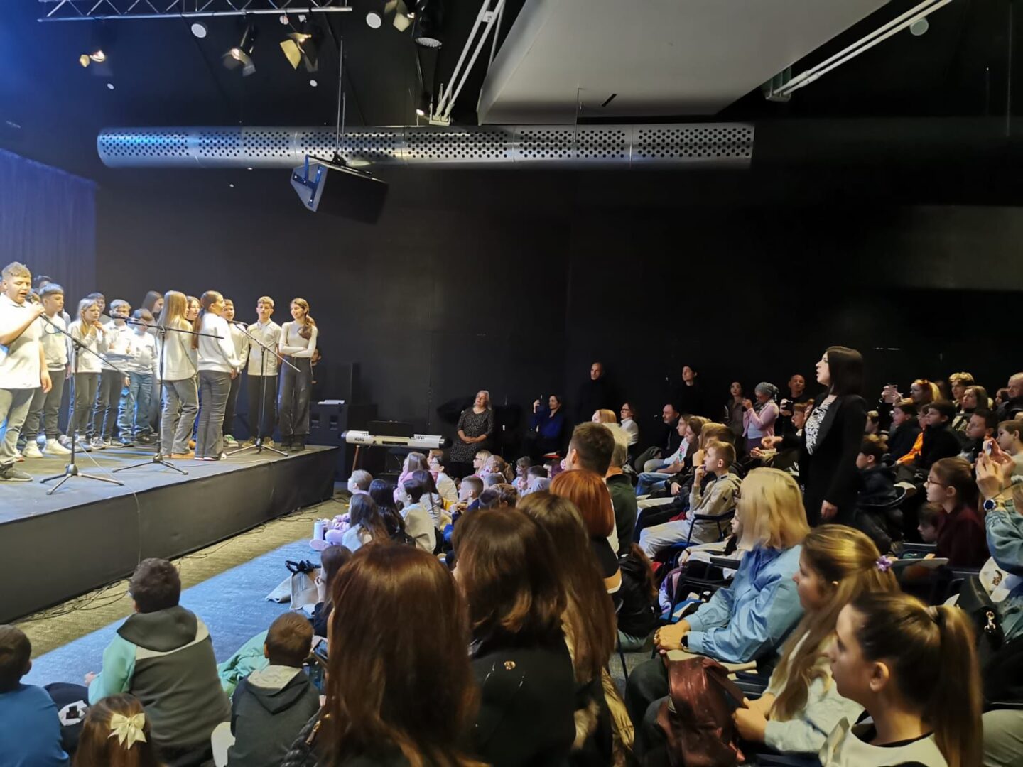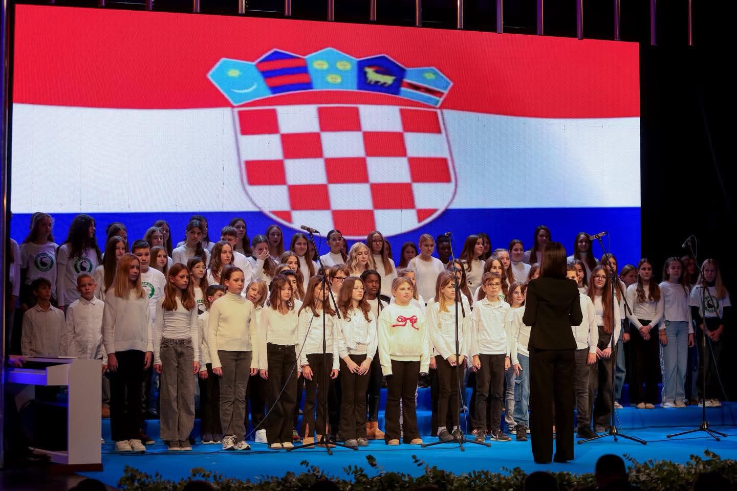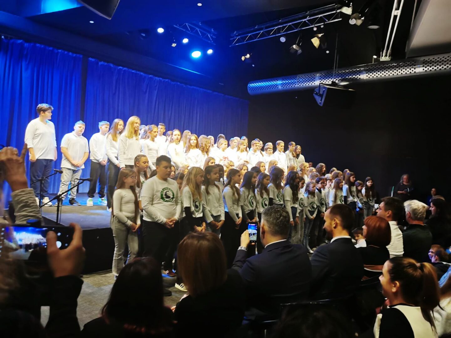 zajedno sa školama Stanovi i Nova, otpjevali hrvatsku himnu i skladbu Kalelarga pod ravnanjem