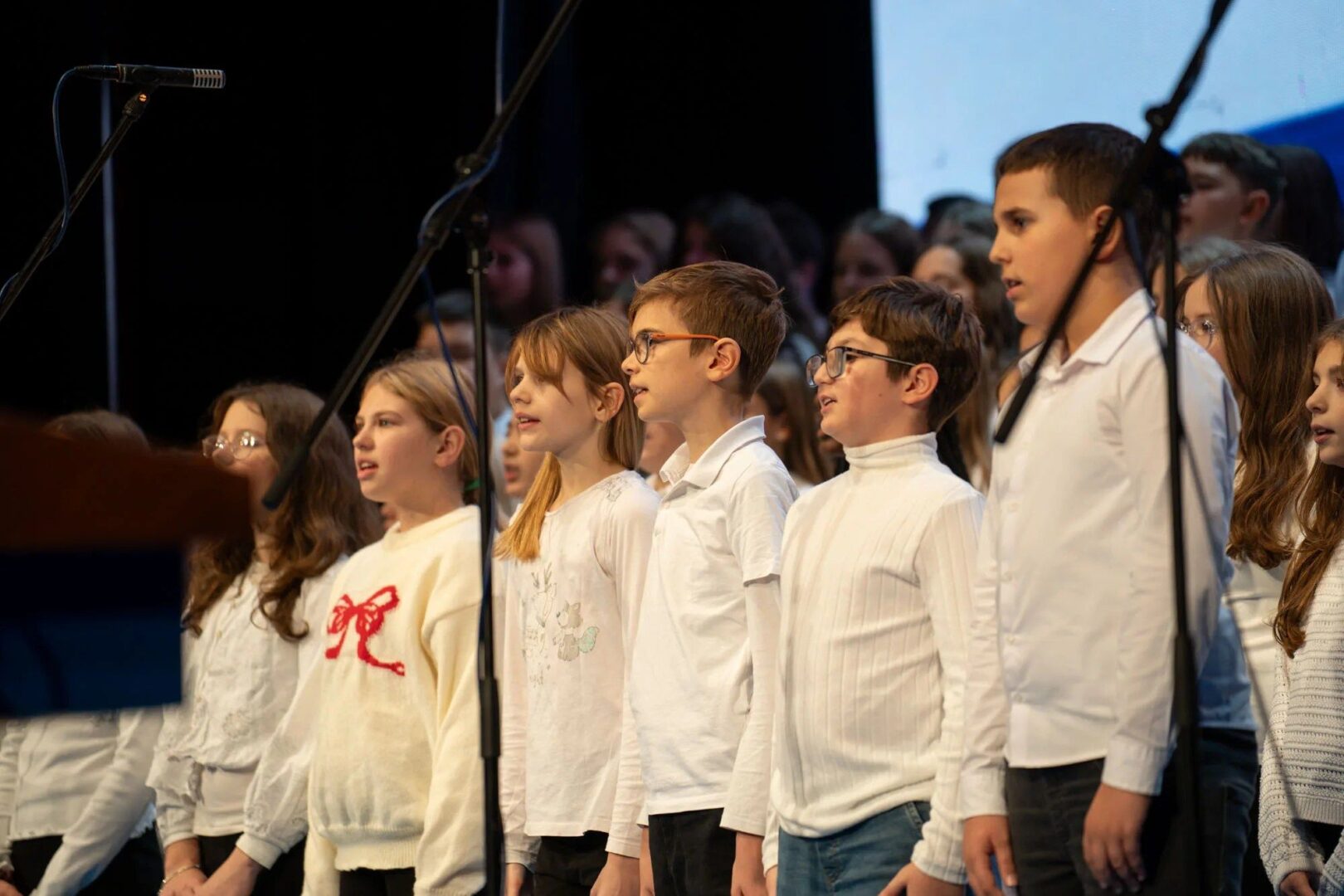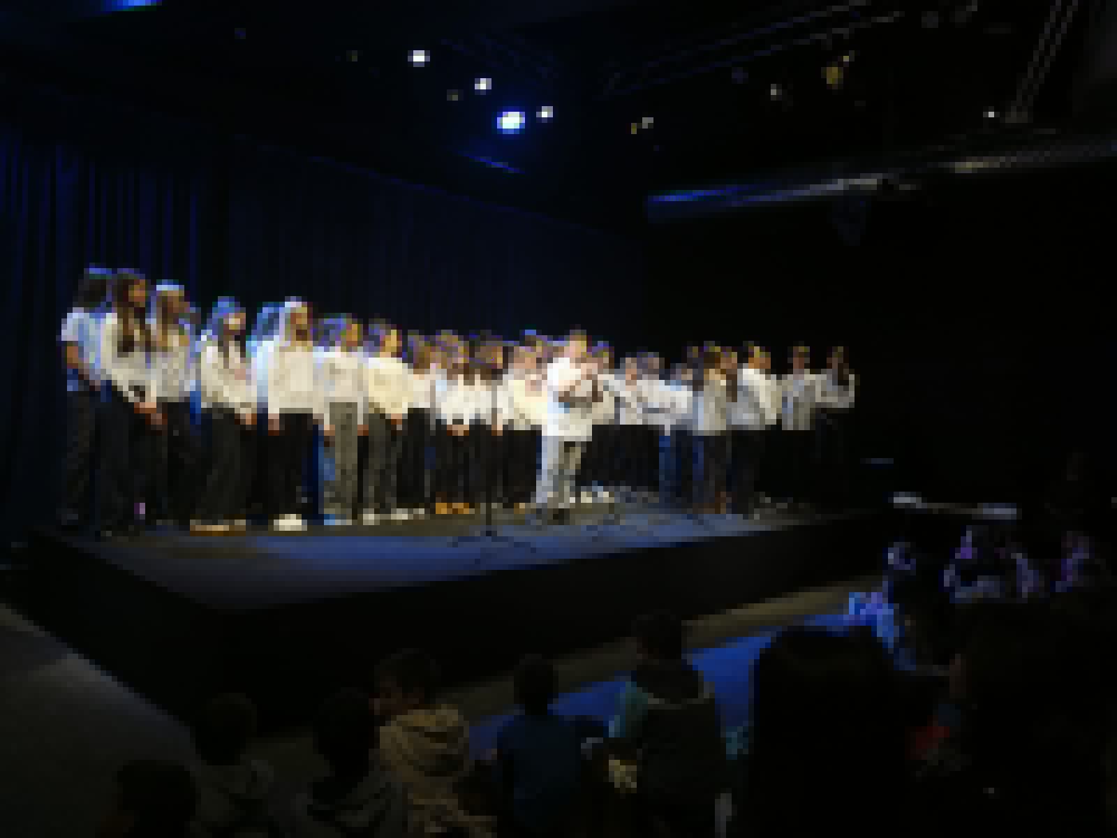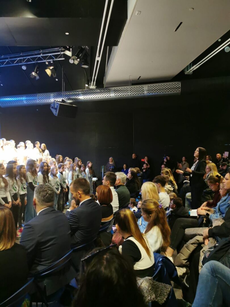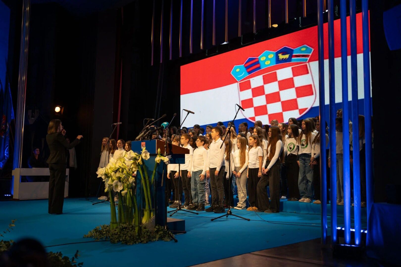 zajedno sa školama Stanovi i Nova, otpjevali hrvatsku himnu i skladbu Kalelarga pod ravnanjem